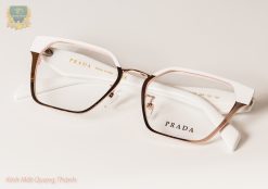 Gọng Kính Prada PR63WV khung viền Titanium mạ PVD ,chuôi nhựa Acetate trắng tinh xảo.Kiểu dáng độc đáo, nhẹ,bền